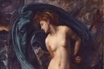 Nell’Andromeda di Edward Poynter, la vergine sacrificale, incatenata sulle rocce battute dalle onde, sembra avere un volto catturato dall’estasi, piuttosto che dal terrore per l’atroce fine con cui dovrà scontare, suo malgrado, l’arroganza della madre. La nudità esibita è incorniciata dal velo blu agitato dal vento che segue le sinuose forme della fanciulla e riproduce le increspature del mare attraverso il panneggio, dando tridimensionalità alla figura: “Se la brezza non le avesse scompigliato i capelli e calde lacrime non le fossero sgorgate dagli occhi, una statua di marmo, questo l’avrebbe creduta”, scrive Ovidio nelle sue Metamorfosi a proposito di quell’apparizione che infiammò l’eroe Perseo di ritorno vittorioso dal combattimento con Medusa.
