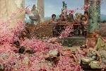 Con Le rose di Eliogabalo, l’artista cita, infatti, un episodio della vita dell’imperatore romano narrato nella Historia Augusta. Secondo il ritratto mitico tramandatoci dalla storiografia, Eliogabalo fu un sovrano vizioso e degenerato e tra i tanti aneddoti riguardanti le sue follie, si racconta di una cena durante la quale alcuni commensali morirono letteralmente sepolti da un’enorme quantità di petali di rose che, a fine convivio, precipitarono dal soffitto per volontà del Princeps. Alma-Tadema divide il quadro in due parti.